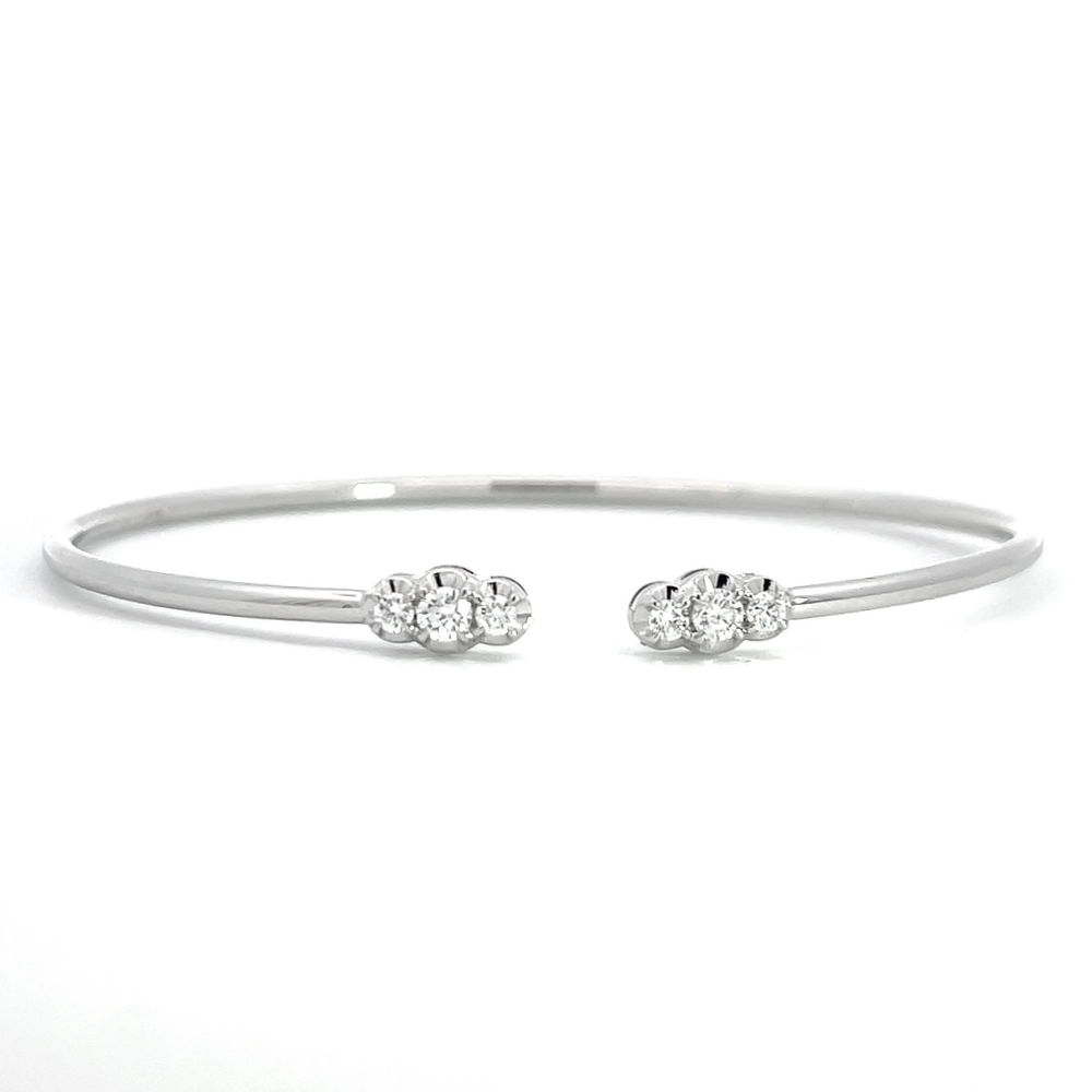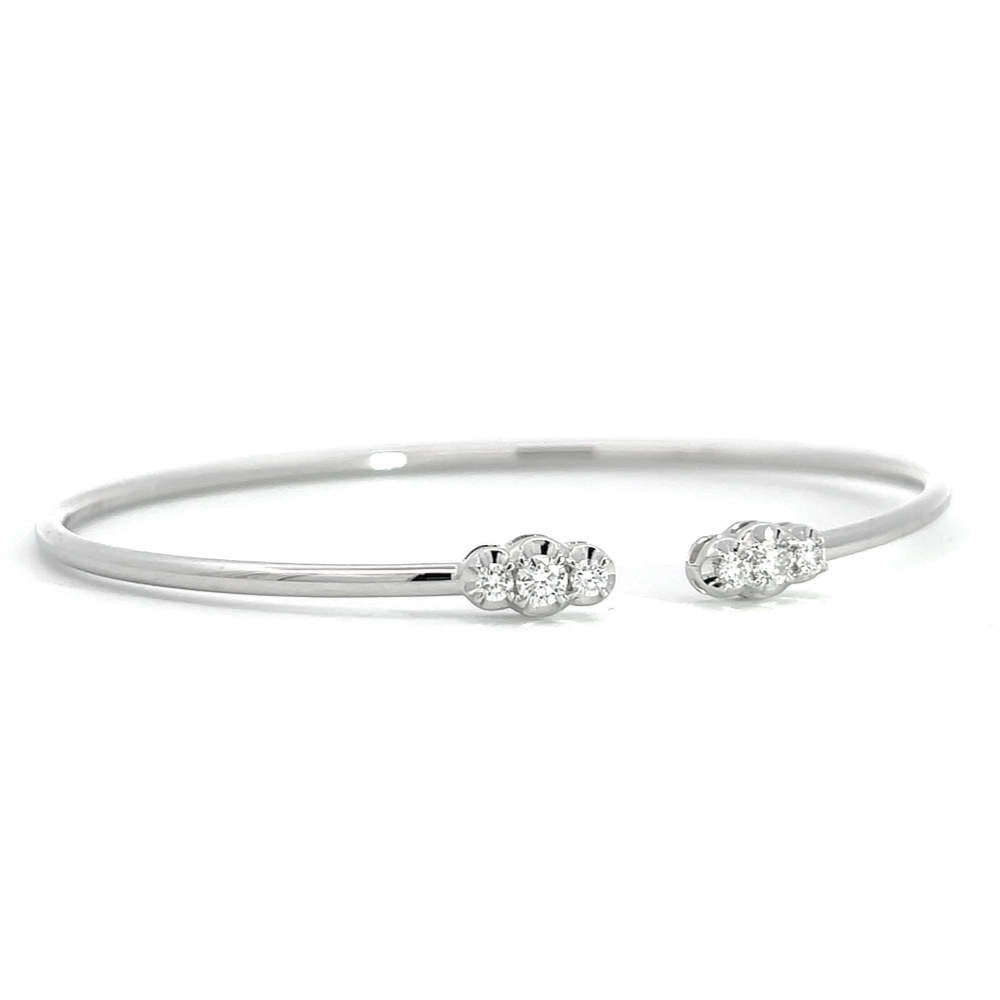 Set with a trilogy of brilliant cut diamonds at each end that add just the right amount of sparkle. Designed with a flexible fit ensuring this chic little bangle will hug your wrist ready for everyday wear and enjoyment.