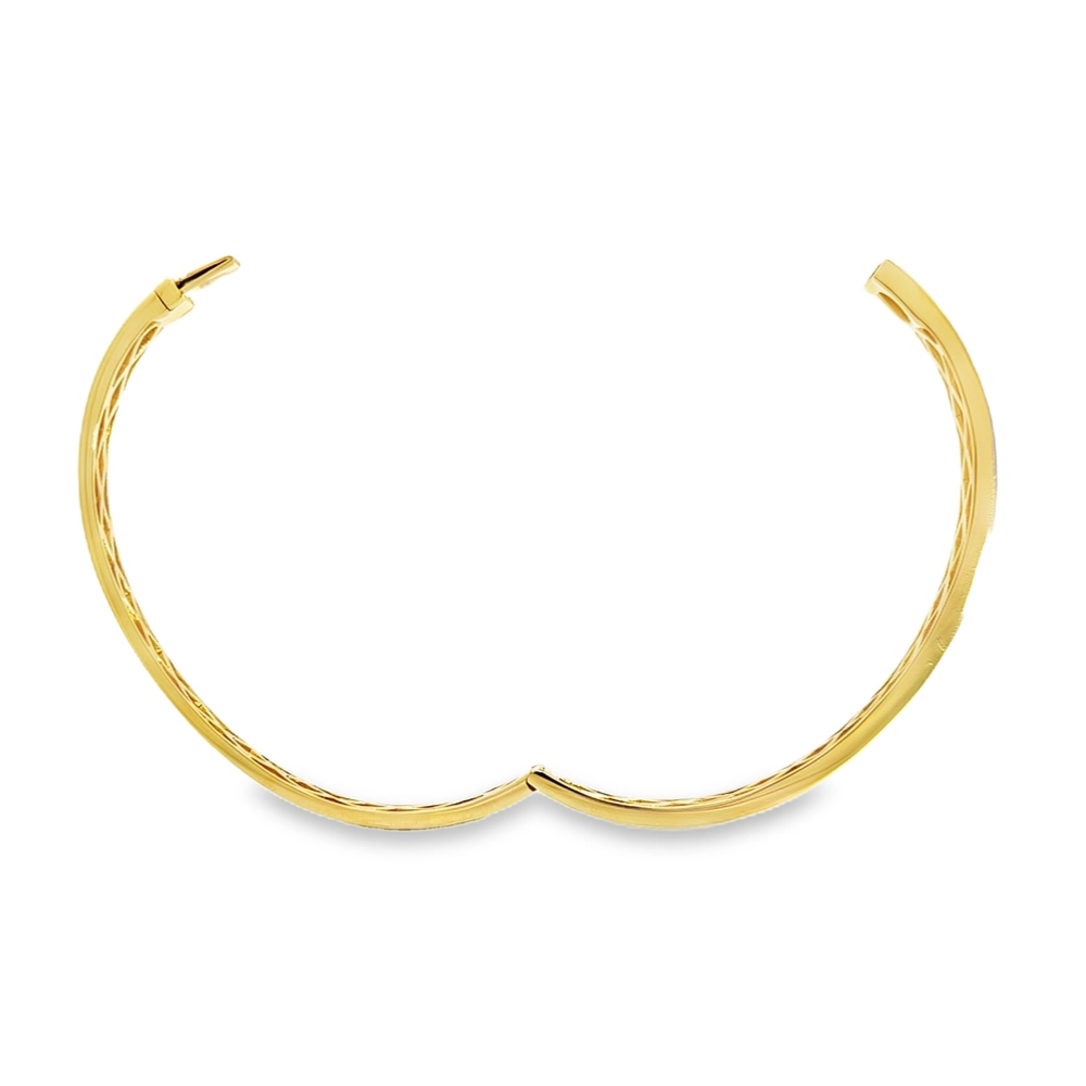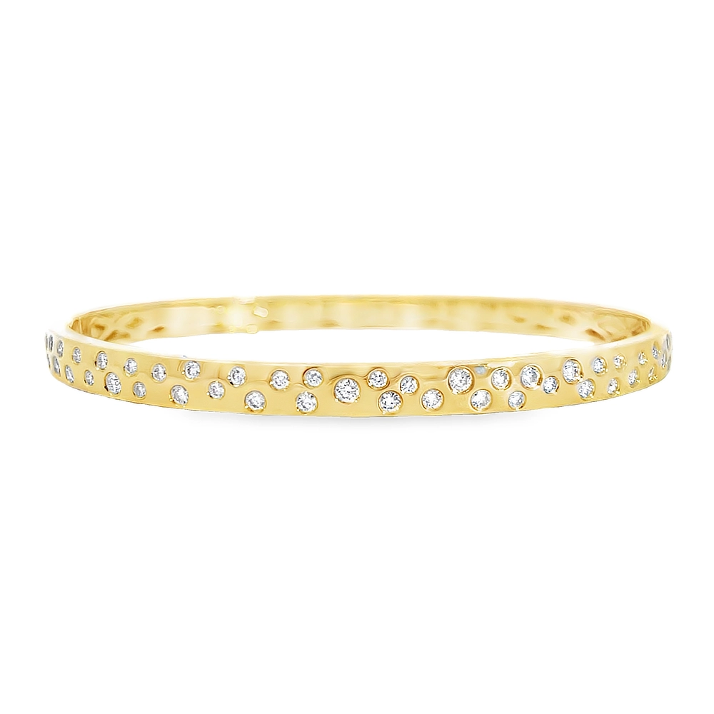 You will immediately feel the quality of this exquisite 18ct yellow gold diamond set bangle. Set with an array of brilliant cut diamonds in an elegant, contemporary style, this beautiful bangle will quickly become your favourite piece.