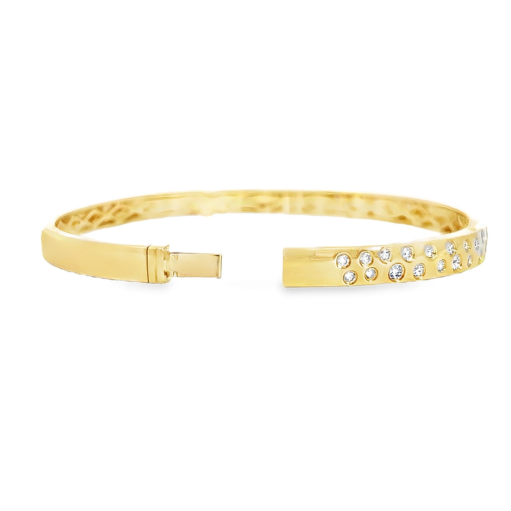 The popular hinged design adds flexibility and comfort, allowing this beautiful piece to sit perfectly on your wrist, this gorgeous bangle design is always popular for its clean modern lines and touch of diamond sparkle.