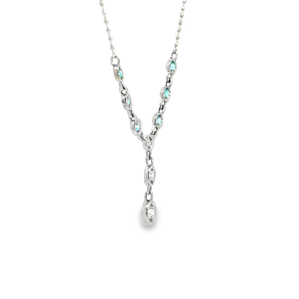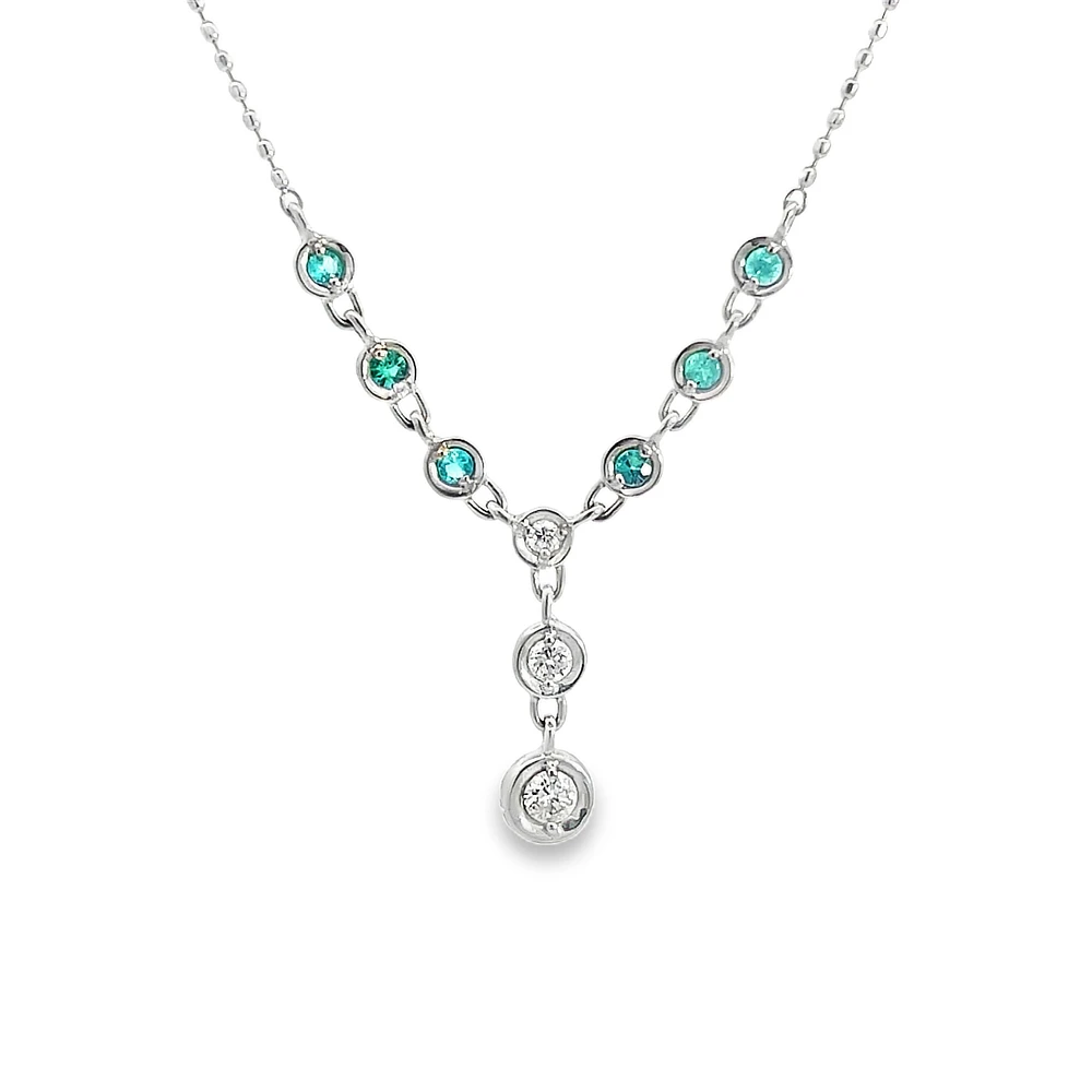 A beautiful display of Paraiiba Tourmaline gently flowing into a waterfall of diamonds to create a stunning necklace that combines the rare beauty of Paraiba with the brilliance of diamond perfectly.