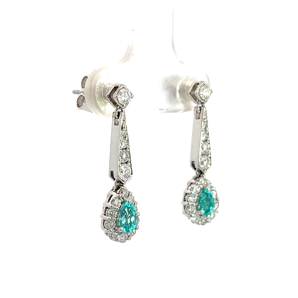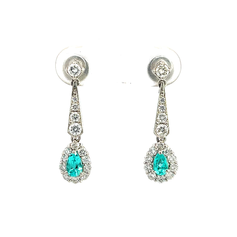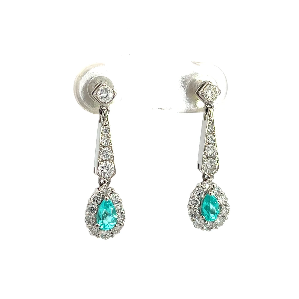 These earrings are devine, with the luxurious beauty of Paraiba Tourmaline set against the brilliance of diamond in an elegant drop design.
